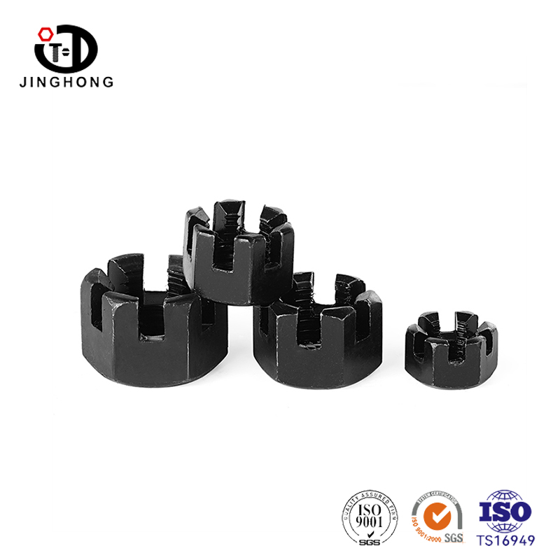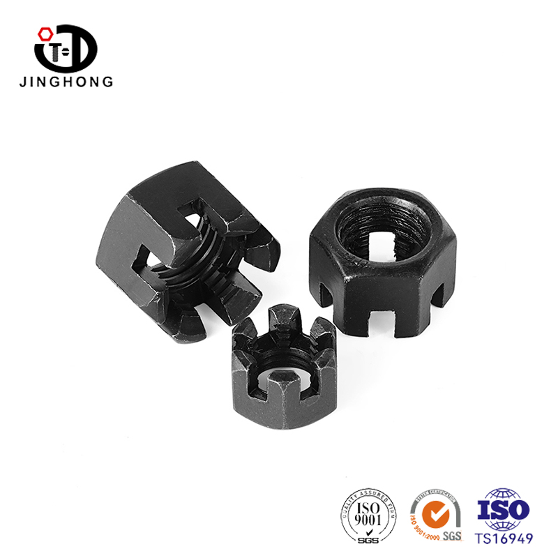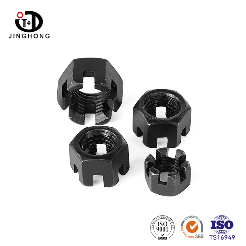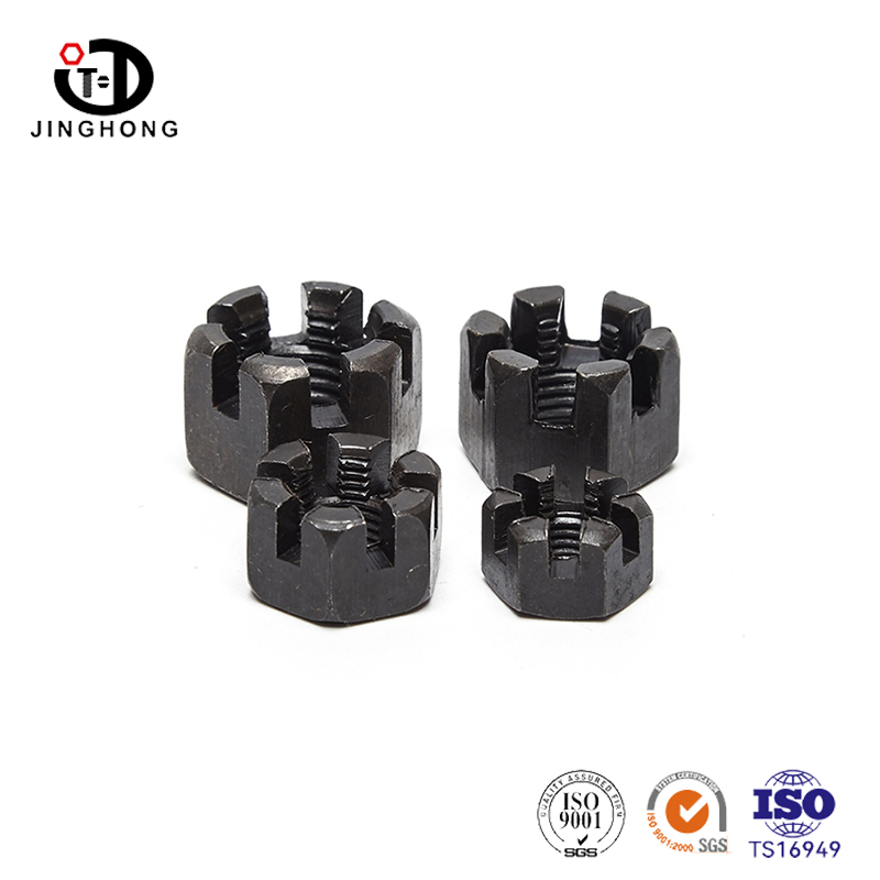 スロット付きのトップダイボディシェイプを備えた最も人気のあるファスナー。スプリットピンやロックワッシャーなどの補助部品を使用して緩みを防ぐことの利点は明らかです。主にボルトで使用されます。機械、建物、車などで最も人気のある構造により、機械の安定性と安全性が保証されます。
