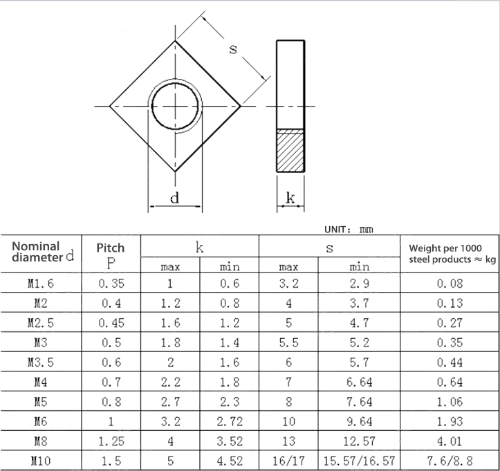 | 名前 | 正方形のナット |