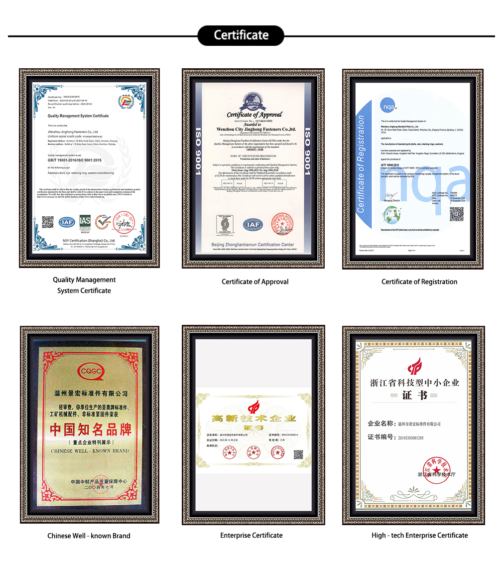 Jinghongは、標準製品の境界を超えた個別の固定ソリューションを顧客に提供することができます。エンジニアリングの専門家は、すべての顧客と密接に協力して、特別な金属合金、正確な寸法、特定の表面処理など、正確な要件を決定します。最先端の製造技術の適用と長年の実務経験のおかげで、すべての技術的要件が細心の注意を払って対処されています。初期のエンジニアリングから完成品まで、包括的なオーダーメイドサービスを提供し、すべてのプロジェクトの独自のニーズを満たし、完璧な結果を得ることができます。