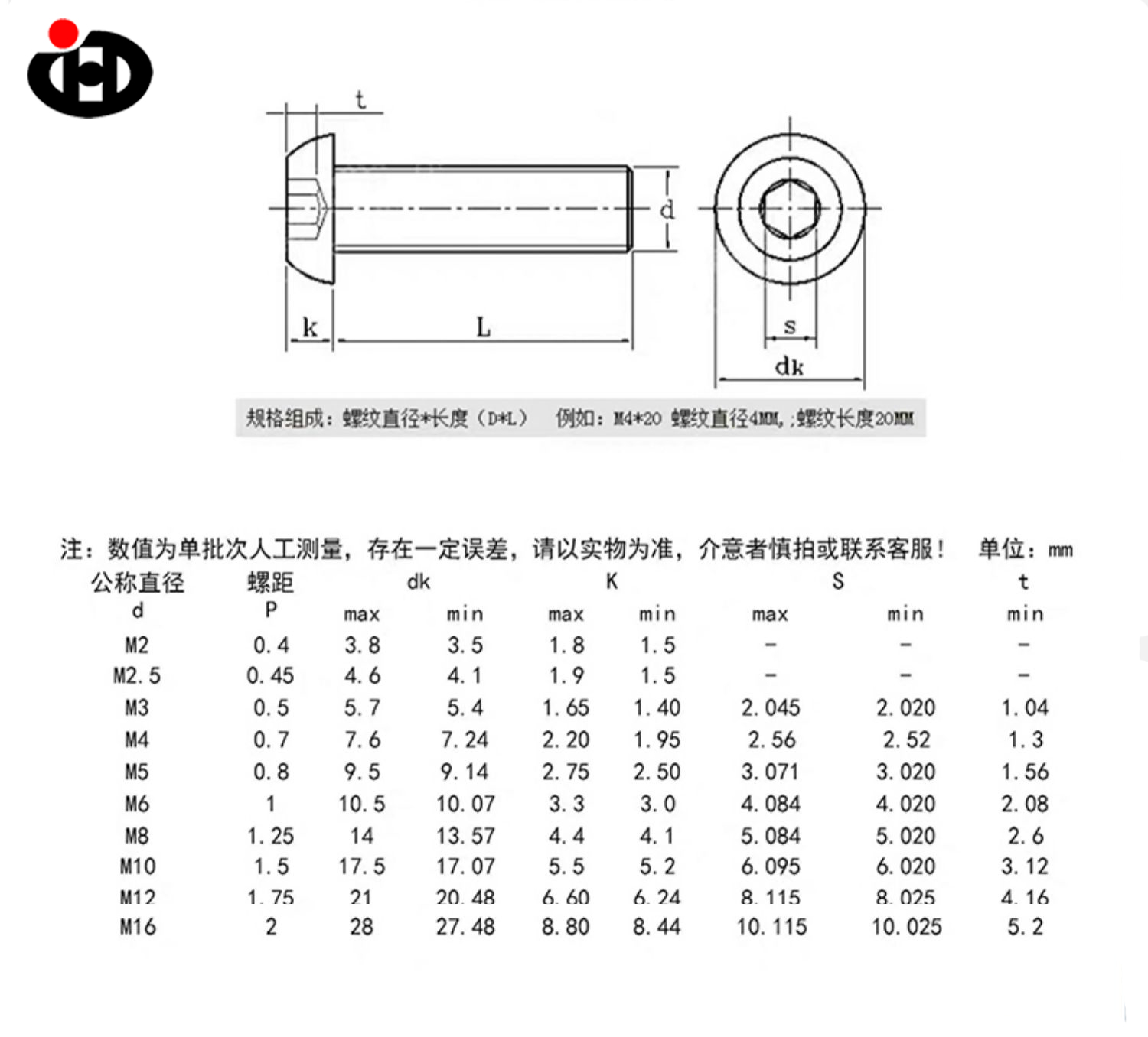 | 名前 | ヘックスソケットパンヘッドメトリックボルト |