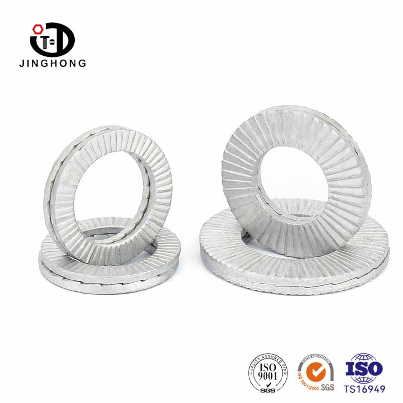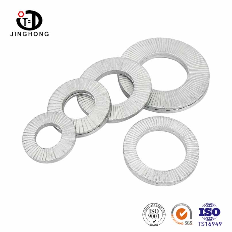 Jinghong標準部品のダブルスタックセルフロックワッシャーには多くの利点があります。ユニークなデザインにより、ワッシャーは優れた振動抵抗を備えており、高い振動環境でもボルトが緩むのを防ぐことができます。さらに、ダブルスタックのセルフロックワッシャーを再利用できます。つまり、ワッシャーを簡単に取り外して再インストールでき、効果を失うことなく再インストールできます。これは非常に費用対効果が高くなります。したがって、ダブルスタックセルフロックワッシャーは、さまざまな業界のアプリケーションに最適な選択肢になります。