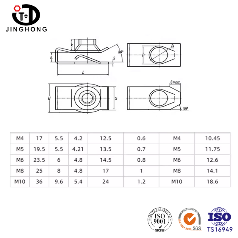 スプリングナットは、素早く取り付けるために使用される留め具です。特長は、スロットレール上の任意の位置で簡単にスライドさせて固定できるスプリングクランプを備えており、調整や分解が容易です。耐食性に優れた高強度マンガン鋼製です。