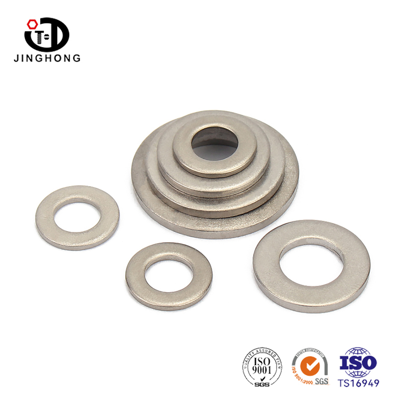 Jinghong Titanium Alloyフラットワッシャーは、細かく仕上げられた表面を備えた標準的な平らなリング形状です(バリ、亀裂なし、欠陥なし)。中国の大手製造業者および高品質のファスナーのサプライヤーとして、ボルト、ナット、その他のネジに近いように、チタンフラットワッシャーの内側と外径を厳密に制御します。