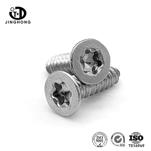 このトルクス皿ねじ転造ねじは、梅の花のような形をした頭部を持ち、通常は 3 つの突き出た角があるため、三角形セルフタッピンねじと呼ばれています。この設計は、ネジと穴の間の接続の気密性と安定性を向上させるのに役立ちます。